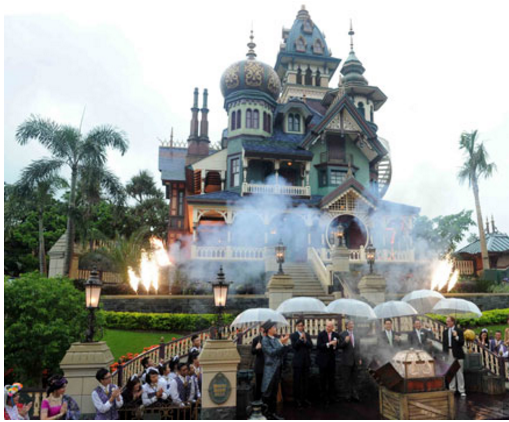 香港迪士尼乐园度假区正分2个阶段,在度假区内14座建筑物天台,装设共超过4500块太阳能板,总面积等于铺满一个标准足球场。预计总发电量高达约186万度电,相当于564个3人家庭一年的用电量。