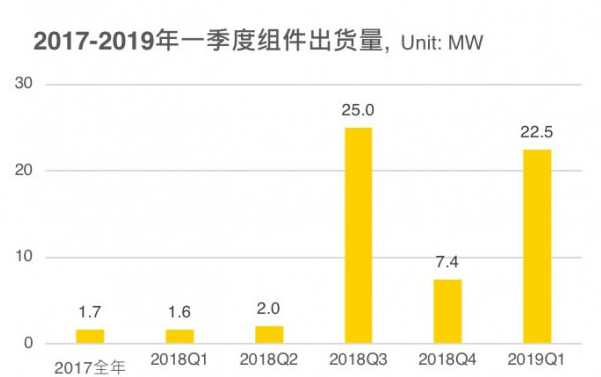 2019年一季度的组件出货量已达到22.5MW,其组件需求可能有部分是用于去年11月份完成竞标的项目。