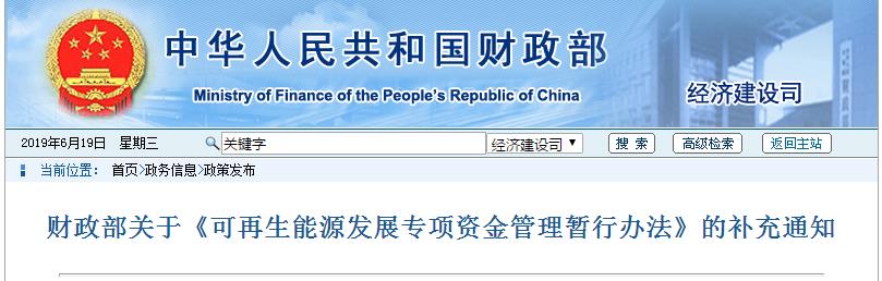 一、可再生能源发展专项资金实施期限为2019至2023年。其中,“十三五”农村水电增效扩容改造中央财政补贴于2020年政策期满后结束。财政部根据国务院有关规定及可再生能源发展形势需要等进行评估,根据评估结果再作调整。