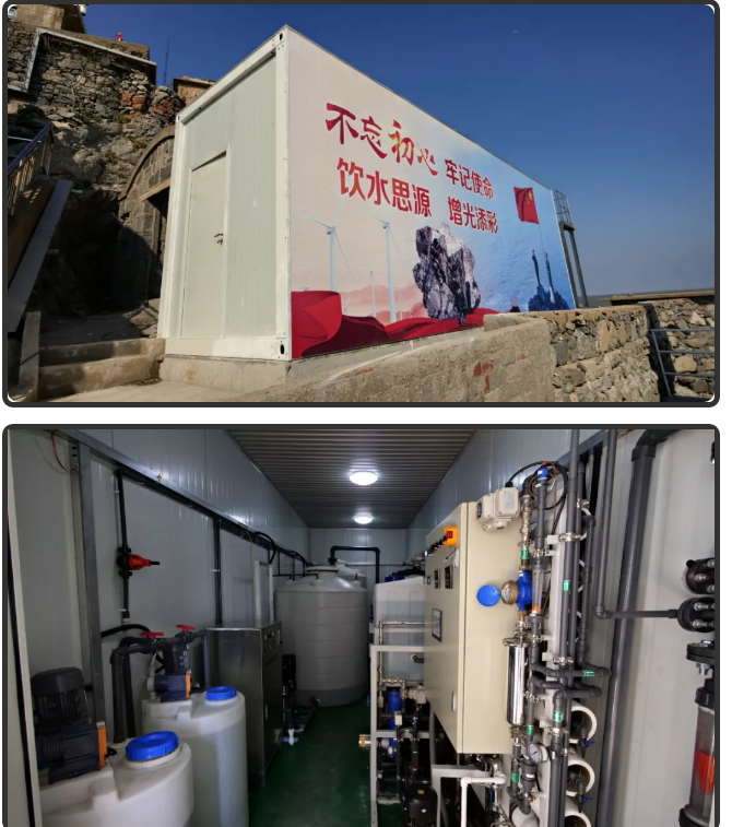 淡水是岛上生活的必备品,以前开山岛的用水都是靠水窖收集的雨水以及渔民们送来的纯净水,卫生等得不到保障。此次,电力小哥为岛上量身定制了一套能日产淡水10吨的海水淡化系统,并在各处设置了直饮水点。