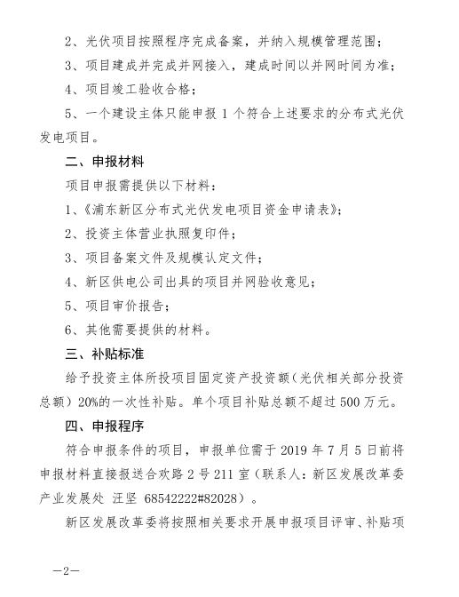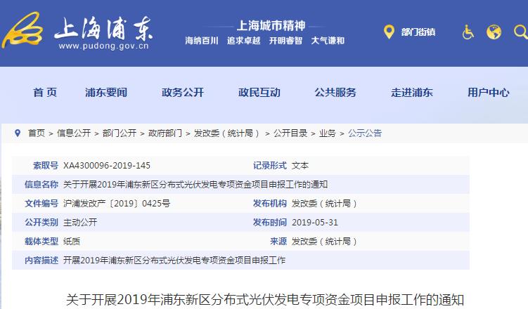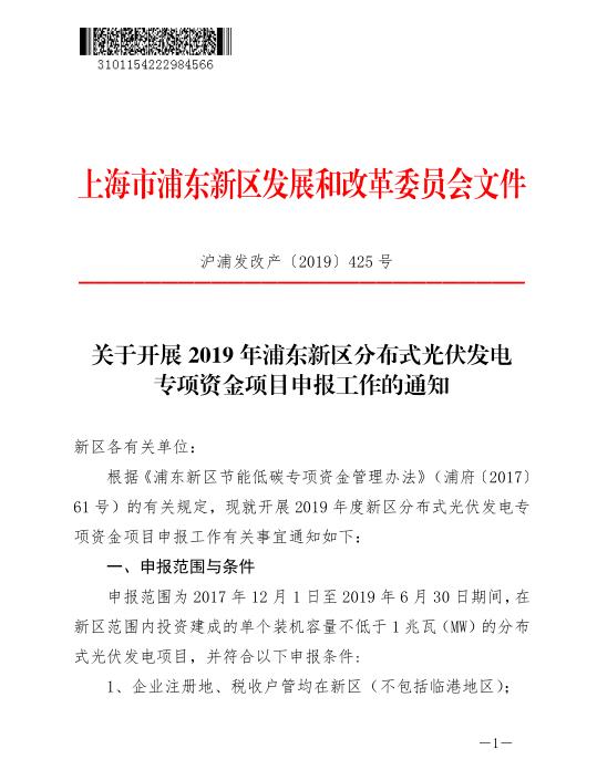 关于开展2019年浦东新区分布式光伏发电专项资金项目申报工作的通知