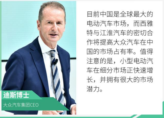在安徽省委书记李锦斌和大众汽车集团CEO迪斯博士的见证下,西雅特总裁卢卡德梅奥(Luca de Meo)、大众汽车集团(中国)CEO冯思翰博士和江淮汽车董事长安进三方共同签署有关江淮大众的协议,该协议确认进一步推动西雅特中国战略,未来二至三年内要将西雅特品牌引入中国。