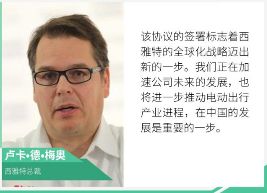 日前,从大众集团官方获悉,西雅特、大众汽车集团(中国)和江淮汽车在西班牙马多力签署协议,以进一步推动西雅特在中国的发展计划。同日,大众汽车集团(中国)携手旗下全资子公司逸驾智能科技有限公司与合肥市人民政府及江淮汽车就落户安徽合肥的智慧城市项目在巴塞罗那签订战略合作框架协议。