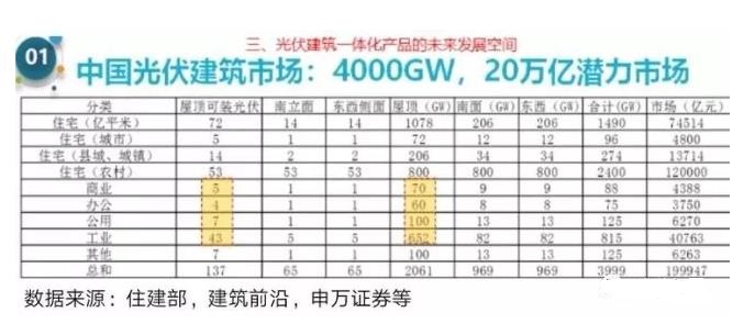 从《光电建筑发展“十三五”规划纲要(征求意见稿)》的目标来看,未来我国将在创新发展、绿色发展的原则上,争取到2020年建筑光伏装机容量达到50GW,达到建筑光伏占分布式光伏装机总量的70%、光伏装机总量的33%;同时,力争使新建光电建筑占新建绿色建筑的25%。