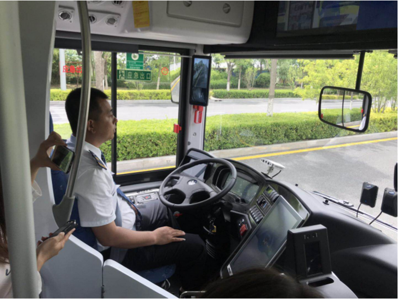 之后,体验者搭乘了智能熊猫巴士。车上配备了智能驾驶系统,司机只需坐在驾驶位置监控,然后按预设线路行驶。乘客上车后,可以告知无人看管的显示屏自己的目的地,显示屏会告诉你哪条路线最快。