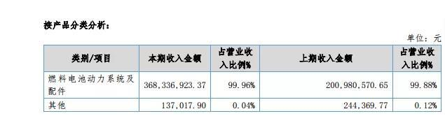 从产品销售情况来看,报告期内,亿华通燃料电池动力系统及配件收入占比达99..96%,是主要收入来源。