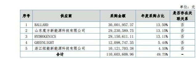 从供应商情况来看,亿华通电堆供应商主要为BALLARD、HYDROGENICS,测试设备供应商主要为GREENLIGHT,电堆生产线合作方为魔方新能源,石墨双极板供应商主要为浙江纽能。