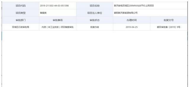 4、朝阳新天新能源有限公司(河北建设投资集团有限责任公司全资子公司)备案200MW