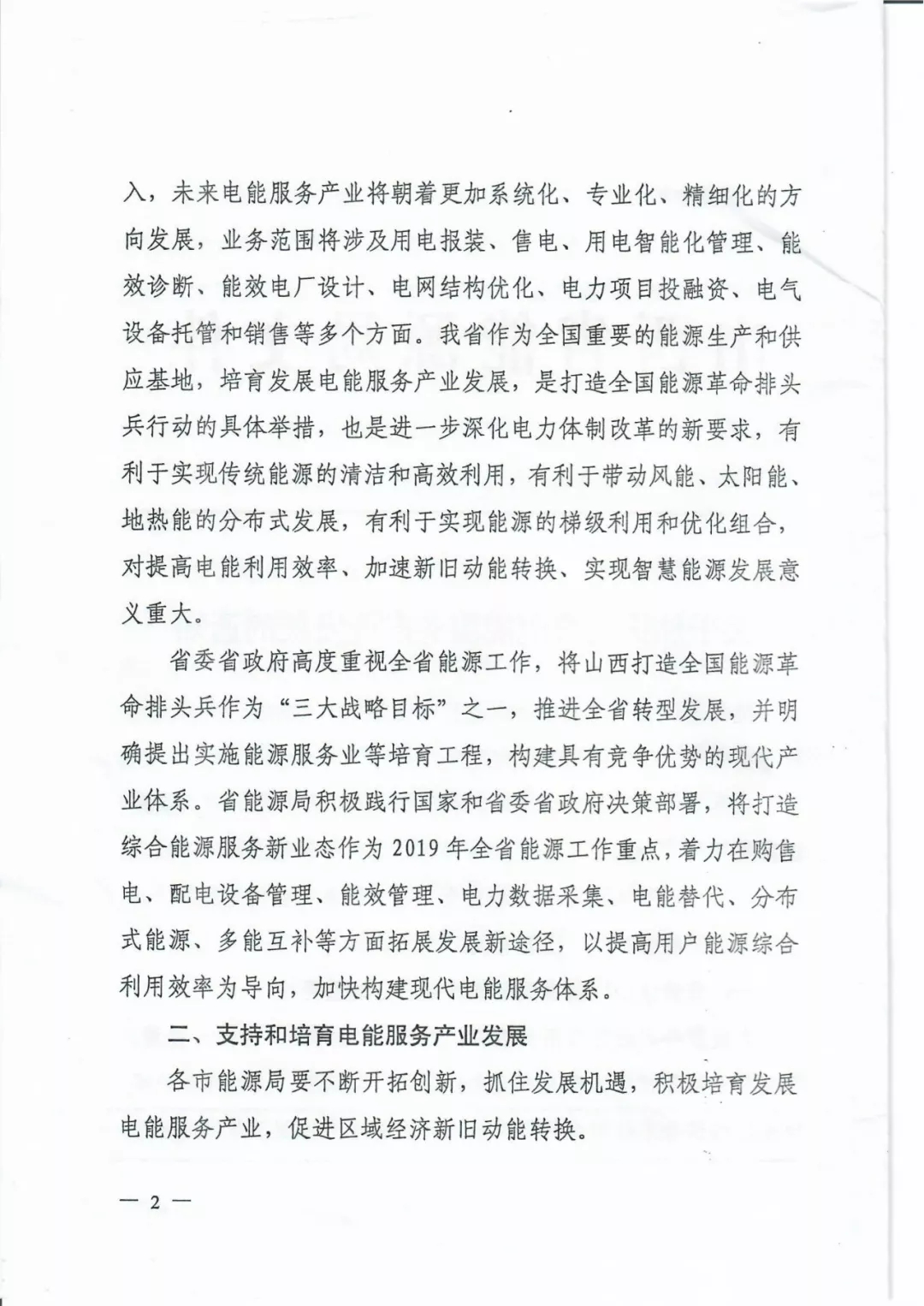 山西省能源局将打造综合能源服务新业态作为2019年全省能源工作重点,着力在购售电、配电设备管理、能效管理、电力数据采集、电能替代、分布式能源、多能互补等方面拓展发展新途径,以提高用户能源综合利用效率为导向,加快构建现代电能服务体系。支持开展园区综合能源服务项目试点。重点探索运用物联网、大数据等新技术,建设分布式光伏发电、分布式生物质发电、冷热电三联供等项目,满足终端用户对电、热、冷、气等多种能源的需求,构建以电为中心的综合能源供应系统。