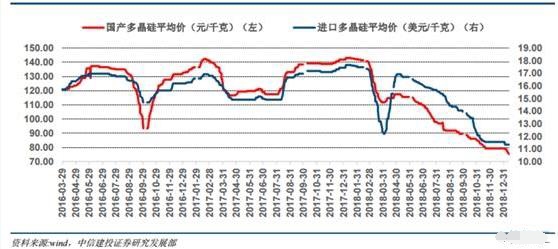 2018年第四季度至2019年一季度,光伏海外需求旺盛引致国内硅片、硅料有所提价,19Q1印度、日本抢装行情结束后可能导致需求暂时空档,二季度产业景气度将有所回调,待三四季度国内旺季来临时,产业链价格将较为稳定。