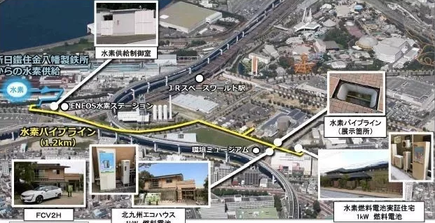 现在氢能作为清洁能源备受世界瞩目,而北九州市的氢能源发展自然也不甘落后,在市内打造了一座氢能小镇。氢能泡泡在访问日本时也曾特地去参观。北九州市的氢能小镇是目前世界上唯一大规模利用氢气专用管道(全长1.3公里的碳素钢管)向住宅和商业设施的纯氢燃料电池进行氢能供给的地区。