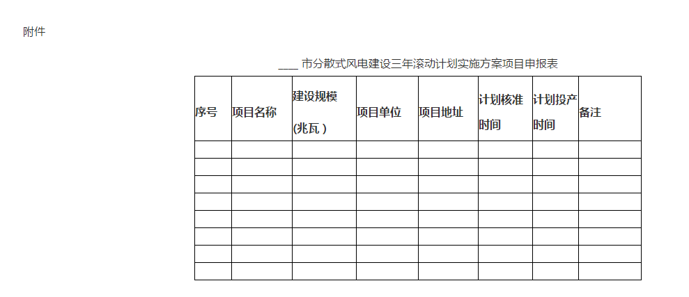 附件:____ 市分散式风电建设三年滚动计划实施方案项目申报表