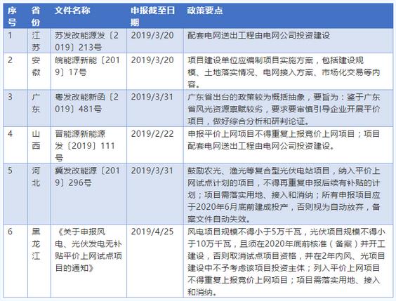 继国家发展改革委、国家能源局联合下发了《关于积极推进风电、光伏发电无补贴平价上网有关工作的通知》(发改能源〔2019〕19号,以下简称“19号文”),正式官宣平价上网项目后,作为2018年用电量位于前三甲的江苏省率先发布组织平价上网项目的相关文件,截止目前全国共有6个省份就此正式出台了相关政策文件,以实际推进平价上网项目实施(某些地方尽管未出台政策文件,但已备案平价上网项目)。近日,国家能源局又发布了《关于推进风电、光伏无补贴平价上网项目建设的工作方案(征求意见稿)》(以下简称“征求意见稿”),平价上网的脚步已不断临近。
