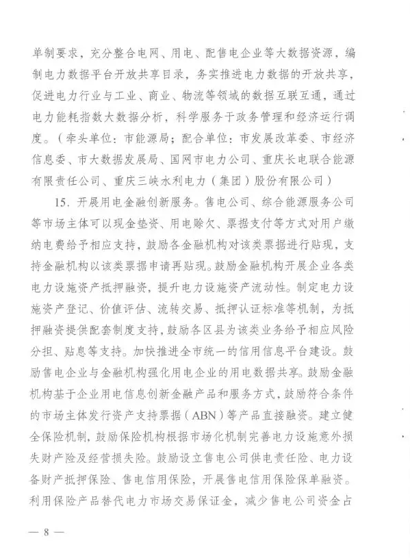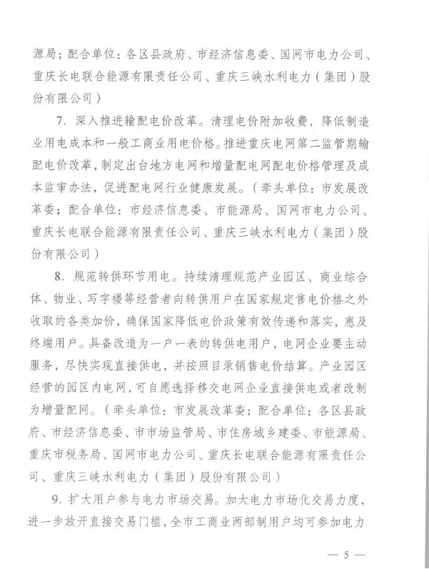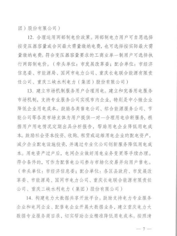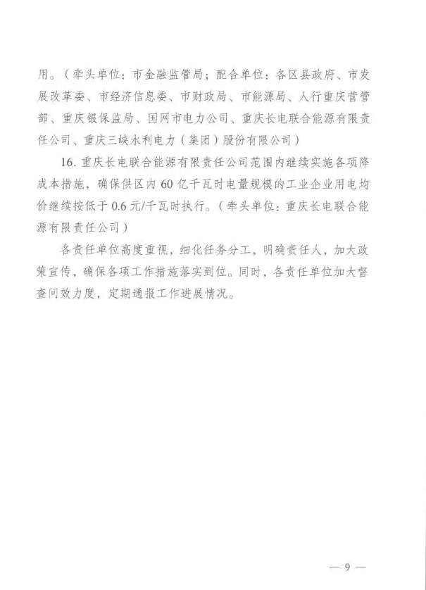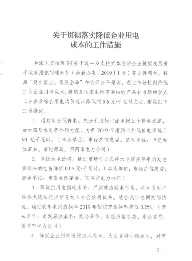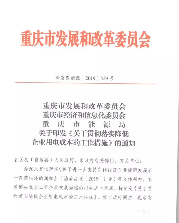 4月28日,重庆市发改委、重庆市经信委、重庆市能源局联合印发了《关于贯彻落实降低企业用电成本的工作措施》,推出了16项具体措施: