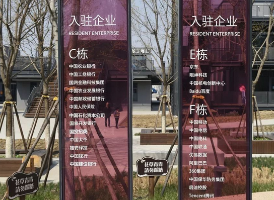 服务中心的工作人员告诉记者,2019年初开始,陆续有二三十家高端企业开始在雄安市民服务中心企业办公区挂牌,并陆续入驻办公。记者在园区内的入驻企业指示牌上,看到中国银行、中国太平、国家开发银行等大型金融机构,以及中国三大电信运营商,阿里巴巴、腾讯、百度等互联网巨头已入驻或挂牌。
