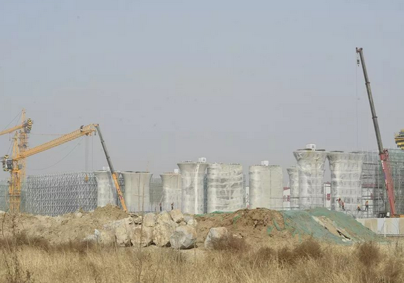 记者驱车前往位于雄县城区东北部,距离城区约8公里的雄安站。远远就能看到高架桥墩已经立起来了。通往雄安站的所有路上,尽是混凝土搅拌车、载满泥沙的渣土车在赶路,一路尘土飞扬。