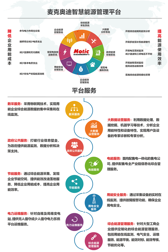 从2017年6月成立到现在,麦克奥迪能源科技经过实际市场了解到,用户在选择综合能源服务公司时首先考虑的是对技术的先进性以及整体资源整合能力和落地服务能力,这恰恰是麦克奥迪能源科技的优势所在,麦克奥迪能源科技会为用户提供一整套综合能源管理方案,从总体能源规划、能源管控、能效分析、用能安全等多个方面提供具体服务。