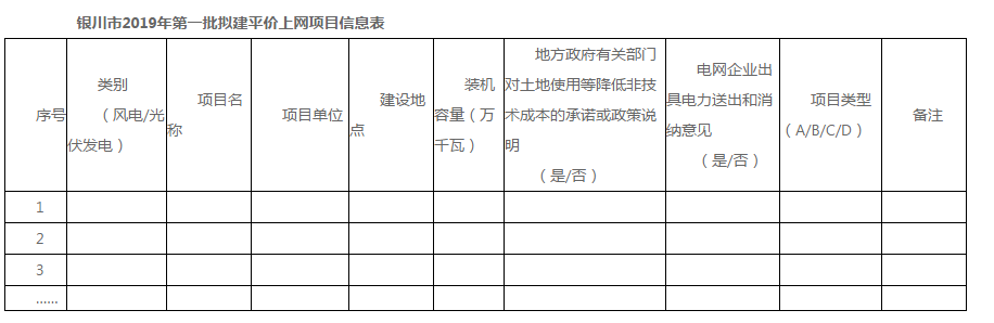 附件:1.银川市2019年第一批拟建平价上网项目信息表