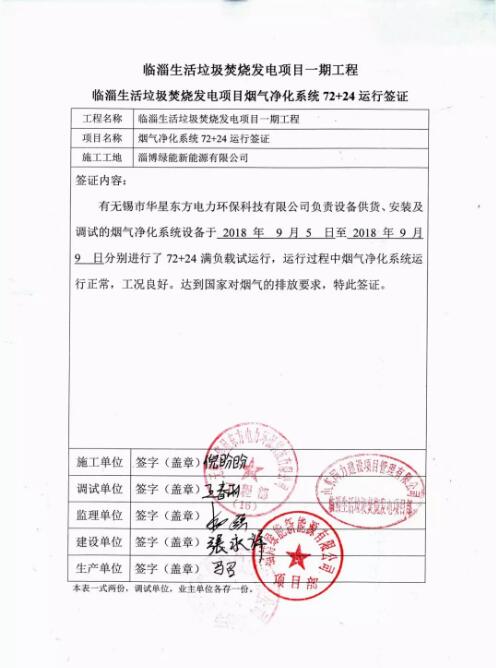 山东临淄1x1000t/d生活垃圾焚烧发电烟气净化工程于2018年9月9号通过72+24小时验收,通过半年的运行,现该项目运行稳定,各项技术参数达到设计要求。
