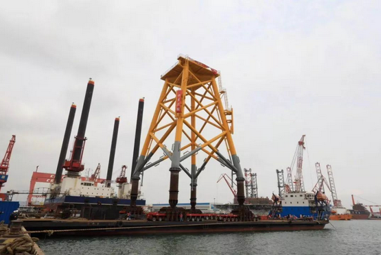 近日,三航局江苏分公司中广核阳江南鹏岛海上风电场工程项目经理部顺利完成该项目首套风机基础导管架吊装工作。该导管架总重超900吨,是目前国内最大最重的海上风机基础导管架。