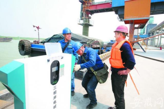 据巢湖市人民政府网消息,4月7日,在巢湖海螺码头,合肥供电公司员工为靠岸船舶进行接电服务。通过改造现有电力系统,巢湖海螺码头于近期升级为合肥市首个综合能源服务港口。船舶靠岸期间生产生活无需使用柴油发电机,直接使用清洁、绿色的岸上电源,全面实现“零油耗、零排放、零噪音”。