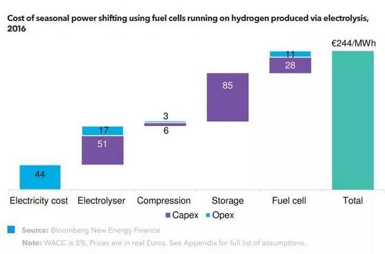 然而我们认为,如果季节性电力转换系统的成本迅速下跌,并开始采用盐穴储氢技术,那么系统的成本可能会降到目前的一半。