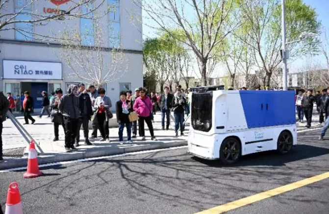 3月31日,快递无人车在雄安市民服务中心内行驶。新华社记者金良快 摄
