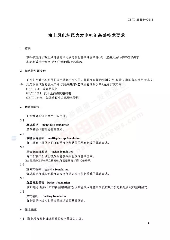 标准名称:海上风电场风力发电机组基础技术要求