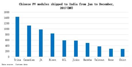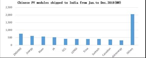 根据海关统计数据,2017年和2018年印度市场上前十大光伏组件企业的“大变脸”也印证了上述变化。