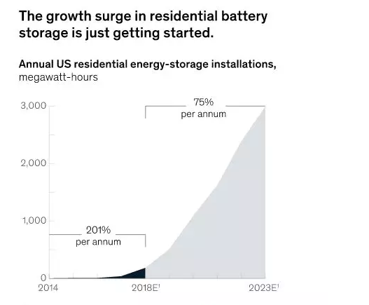 在过去的四年中,美国的住宅储能系统的部署每年大幅增长,增长率超过200%,预计将会继续快速增长(图表1)。2018年,住宅储能系统甚至首次超过公用事业规模的储能系统,这反映出客户正致力于拥有自己的高价值储能系统。