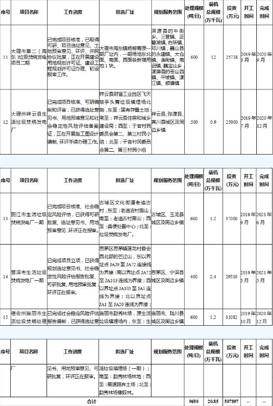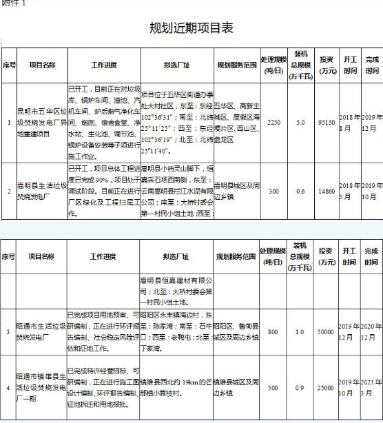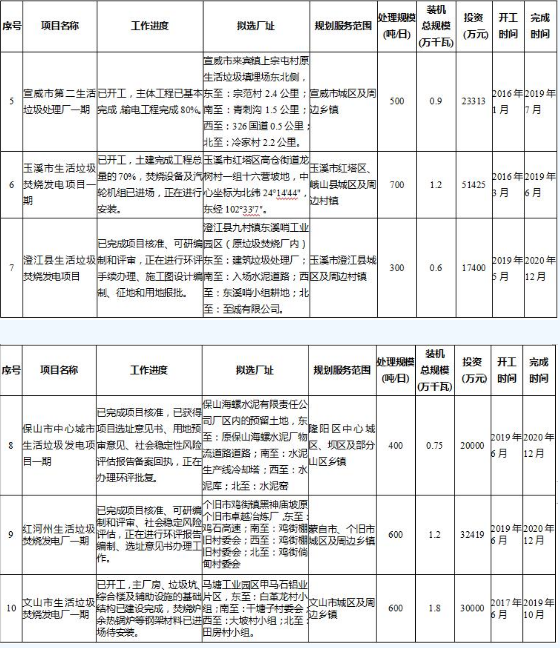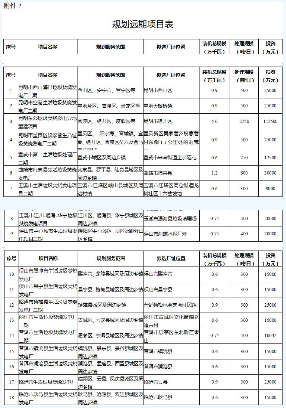 《云南省生活垃圾焚烧发电中长期专项规划(2019-2030年)》(征求意见稿)