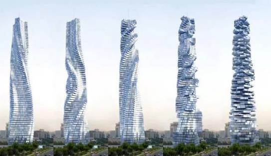 迪拜建造的这座旋转摩天楼将达80层,高度约为420米,每一层都可以360度旋转,每套公寓的面积从120平方米到1200平方米不等。摩天楼还配有声控风力发电机等多种环保装置。