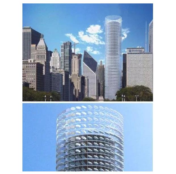 这座位于“风之城”芝加哥的太阳能大厦外立面的追踪装置上有多个圆形太阳能收集器,这些太阳能电池板经过了精心安置,在为建筑遮阳的同时不会影响人们的视野。