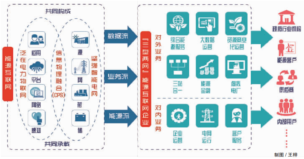 “坚强智能电网和泛在电力物联网是能源互联网在电力系统的具体实现形式,坚强智能电网是‘骨骼肌肉’,支撑电力系统能源流的安全稳定传输,泛在电力物联网是‘神经网络’,实现电力系统‘源—网—荷—储’各环节信息流的末梢采集和归集处理。”华北电力大学能源互联网研究中心主任曾鸣十分形象地解释了泛在电力物联网与坚强智能电网间的密切关系,并表示“三型两网”是一个有机整体,其中“两网”是手段,“三型”是目标,国家电网有限公司意在通过建设运营好“两网”实现向“三型”企业转型。