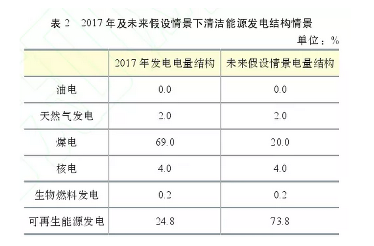 当前我国电源结构仍以化石能源发电为主,2017年煤电发电量占总发电量的69%。作为对比,本文假设未来清洁能源发电结构下煤电电量占比下降至20%,可再生能源发电占比提高到73.8%,见表 2。