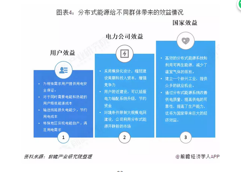 由于分布式能源相对于传统能源具备以上优点,可以分别给个人用户、企业用户、电力公司乃至于国家带来不同程度的效益,具有广阔的发展前景。