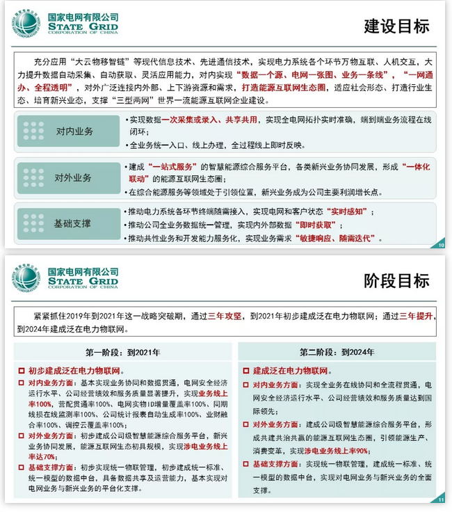 国家电网公司提出,紧紧抓住2019年到2021年这一战略突破期,通过三年攻坚,到2021年初步建成泛在电力物联网;通过三年提升,到2024年建成泛在电力物联网。
