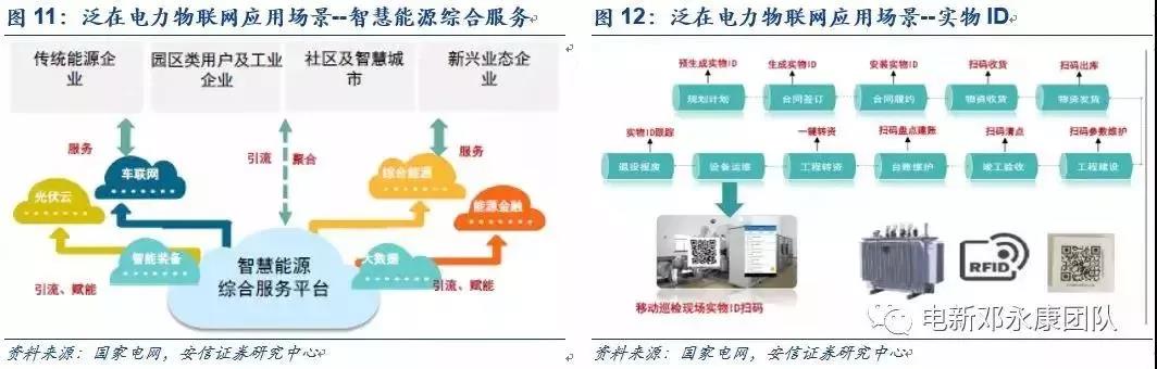 在新兴领域,泛在电力物联网将在统一感知、实物ID应用、精准主动抢修、虚拟电厂、智慧能源服务一站式办理、大数据应用等领域,为电网企业和新兴业务主体赋能。以综合能源服务平台为例,对于可以应用入口将能效服务共享平台、省级客户侧用能服务平台、新能源大数据平台、车联网、光伏云网、智慧能源控制等系统,发挥规模化集聚效应;对外则可为各类新兴业务主体统一提供并网、监控、计量、计费、交易、运维等平台化共享服务。