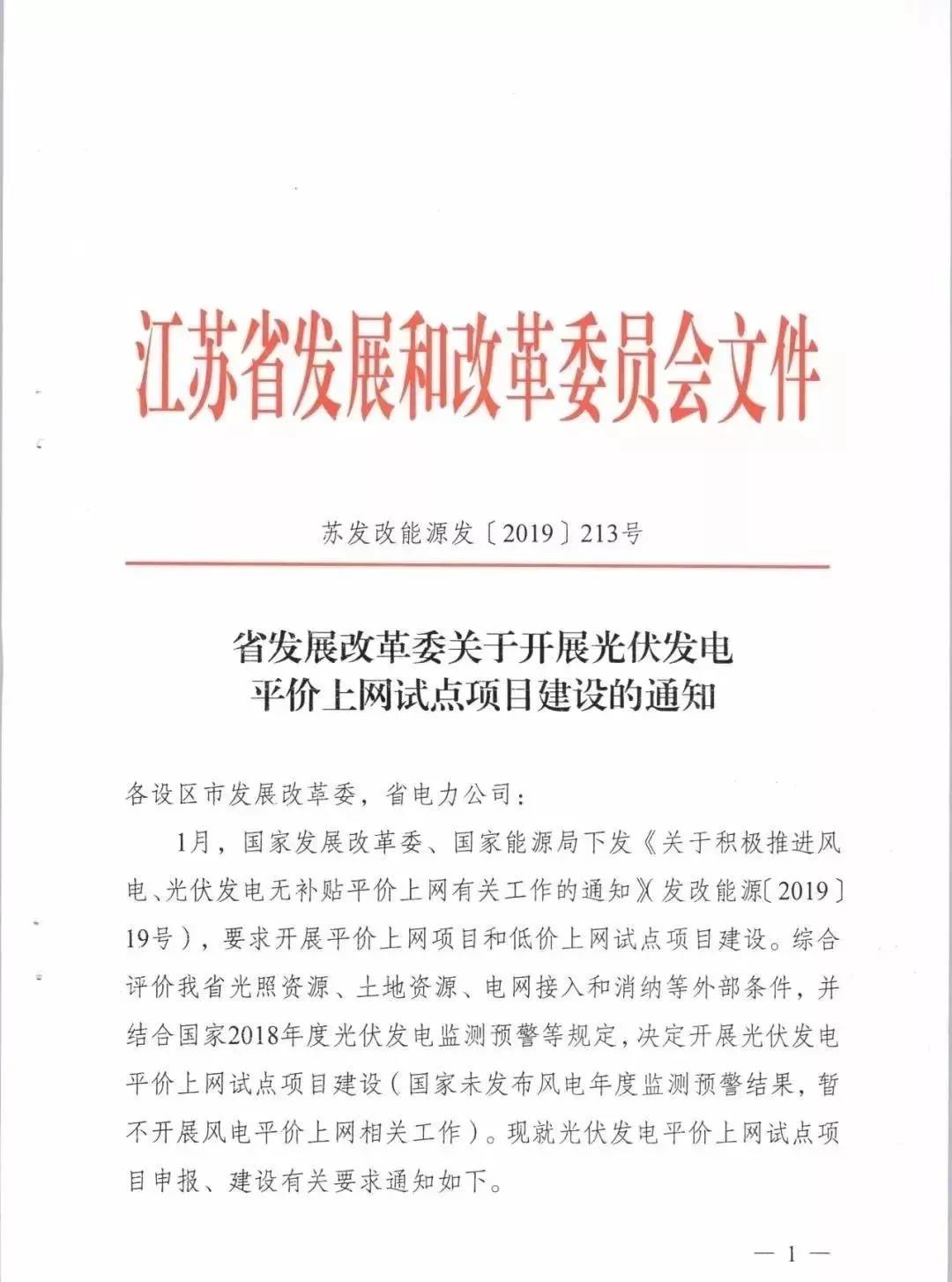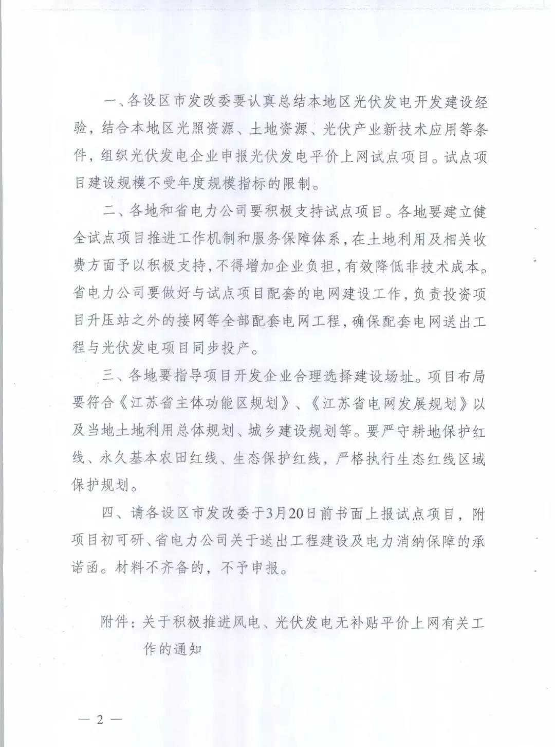 二、江苏:3月20日前上报光伏发电平价上网试点项目