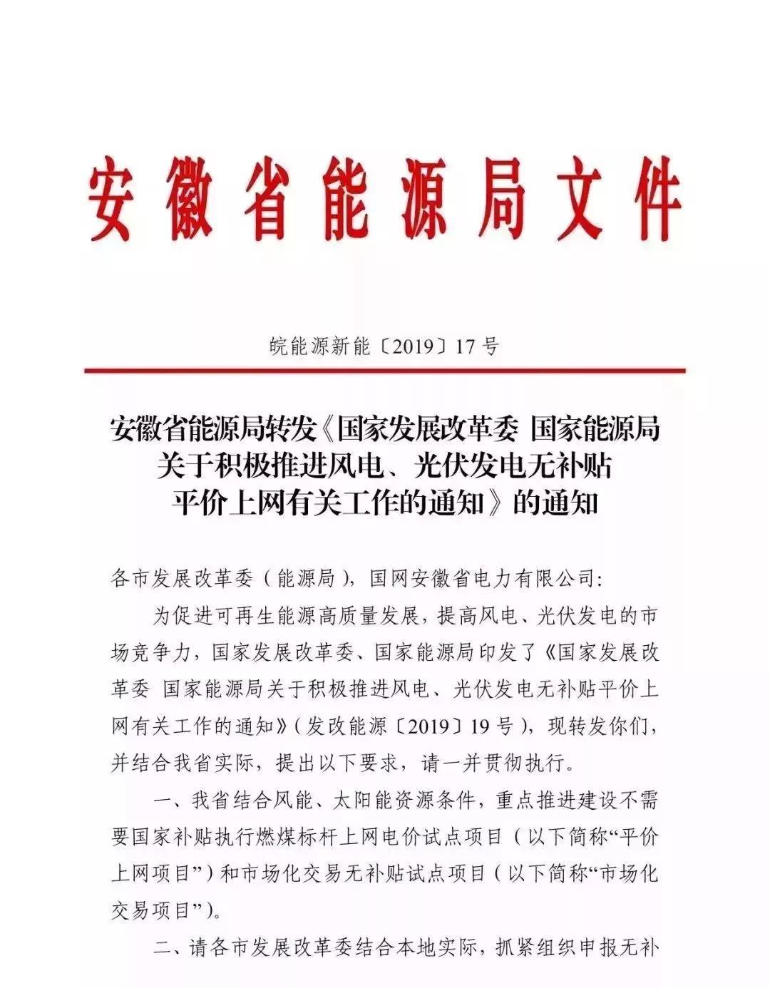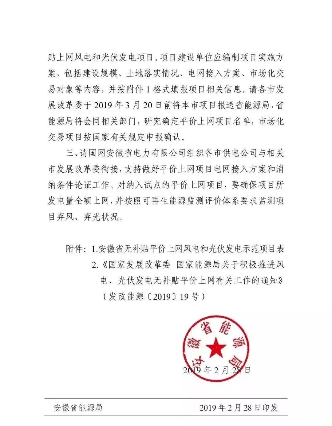 三、安徽:3月20日前上报光伏发电平价上网试点项目