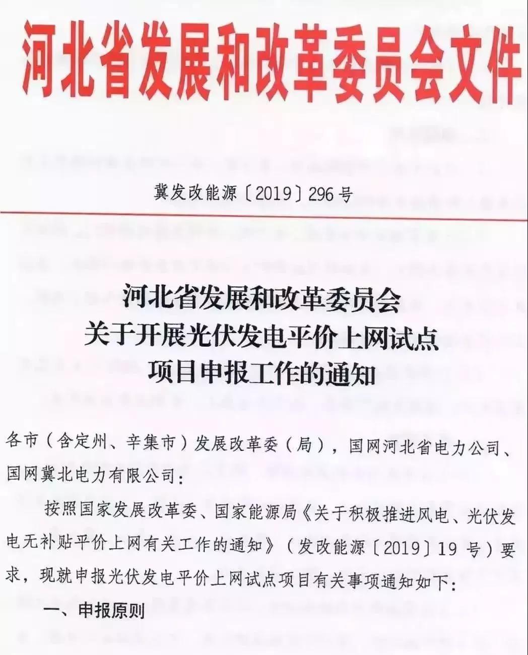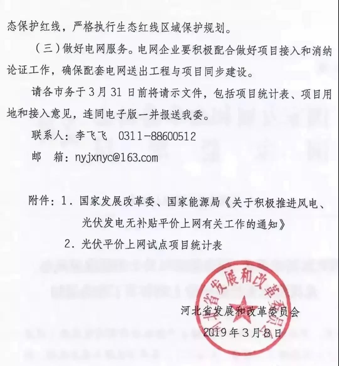 四、河北:3月31日前上报光伏发电平价上网试点项目