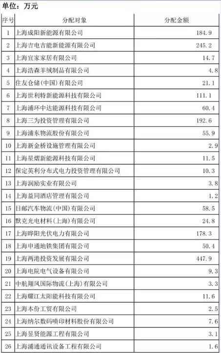 2018年上海市可再生能源和新能源发展专项资金分配结果同时公布。名单附后。