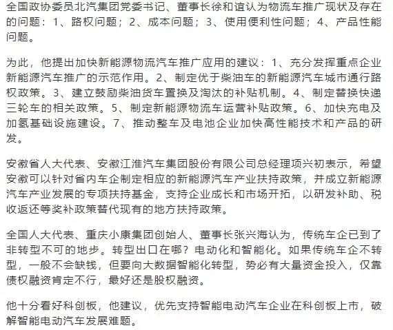 新能源汽车领域,充电难依然是需要集中完善的问题、电动化和智能化成为主流趋势、物流车路权和加大电动化推广等成为热议话题。