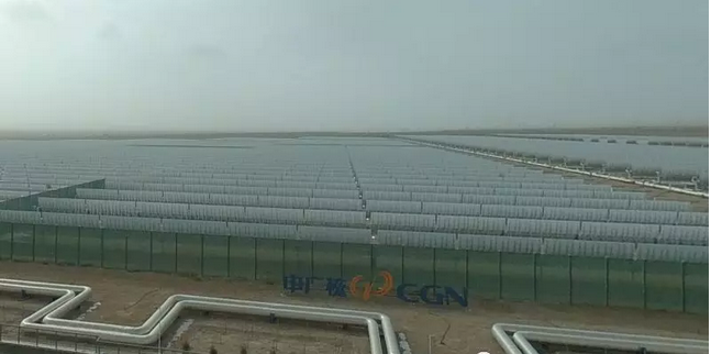 中广核德令哈光热示范项目占地2.46平方公里,相当于360多个标准足球场的面积,采用了槽式导热油集热技术路线,配套9小时熔融盐储热,由太阳岛、热传及蒸汽发生系统、储热岛、发电岛四大部分组成。项目全部采用槽式导热油太阳能热发电技术,能实现24小时连续稳定发电,对地区电网的稳定性起到极大的改善作用。