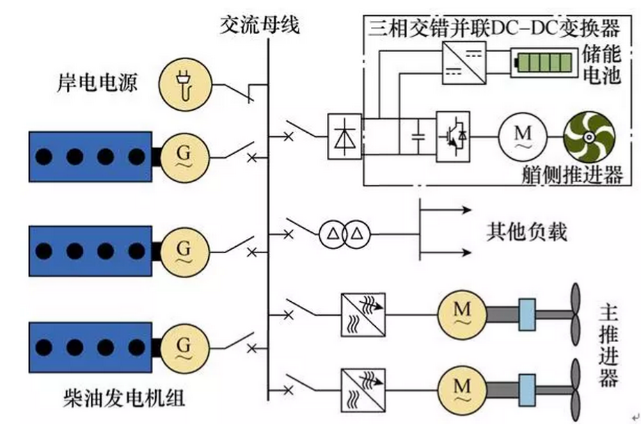 天津工业大学电工电能新技术天津市重点实验室、丹麦奥尔堡大学能源技术系、国网天津市电力公司电缆分公司的研究人员肖朝霞、李怀民等,在2018年《电工技术学报》增刊2上撰文,考虑到船舶电力艏侧推进器频繁快速起停对船舶电力系统(船舶微电网)燃油利用效率和系统稳定性的影响,提出在艏侧推进器直流母线增加储能装置,为艏侧推进器驱动装置供电。