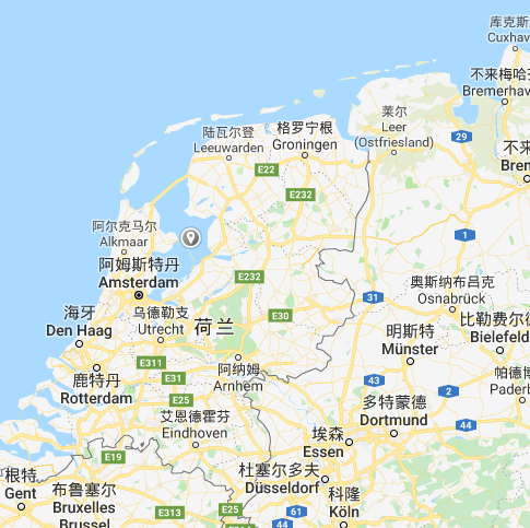 图中灰色小圆点为艾瑟尔湖位置
