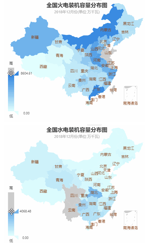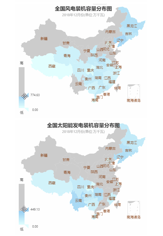 截止2018年底,全国十大风电装机省份分别是:内蒙古2869万千瓦、新疆1921万千瓦、河北1391万千瓦、甘肃1282万千瓦、山东1146万千瓦、山西1043万千瓦、宁夏1011万千瓦、江苏865 万千瓦、云南857万千瓦、辽宁761万千瓦。