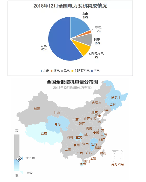 截至 2018 年底,全国发电装机容量19 亿千瓦,同比增长6.5%。其中,火电11.4 亿千瓦(含煤电10.1 亿千瓦、气电 8330万千瓦)、水电3.5亿千瓦(含抽水蓄能2999万千瓦)、核电4466万千瓦、并网风电1.8 亿千瓦、并网太阳能发电1.7亿千瓦。