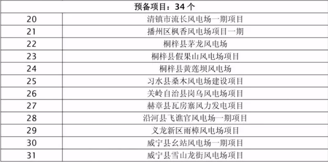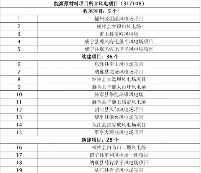 其中能源原材料项目领域包含风电项目31个,名单如下: