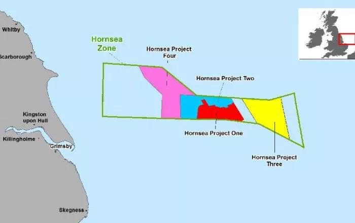 四个Hornsea One海上风电项目分布图